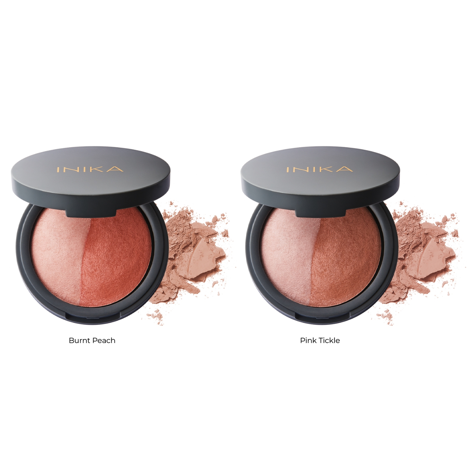 INIKA ORGANIC KOMPAKTINIAI MINERALINIAI SKAISTALAI DUO – Burnt Peach, 6.5 g